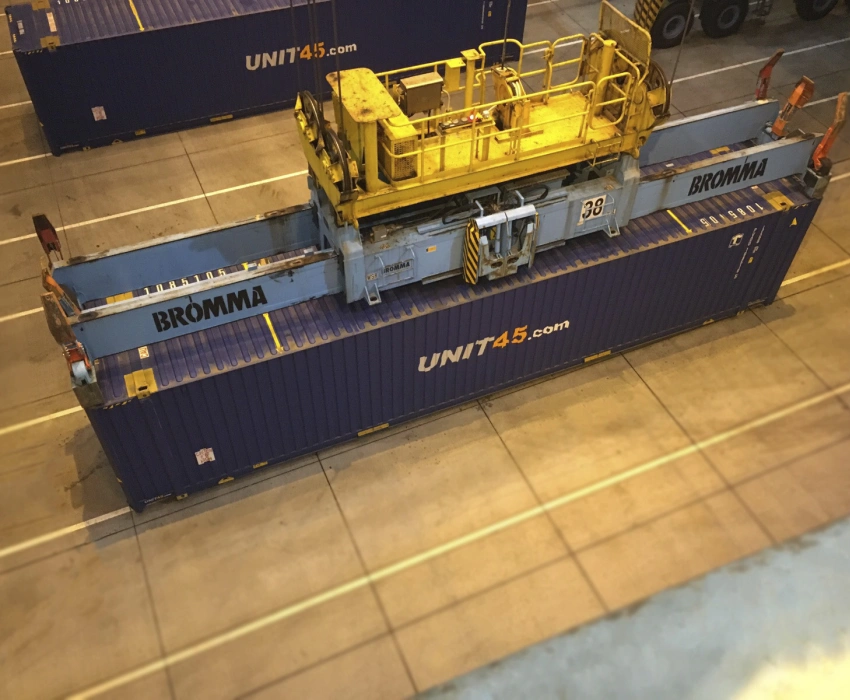 The 45ft container can be handled with the same infrastructure (spreaders, frontlifters, straddle carriers, etc.) as used for 40ft containers.
