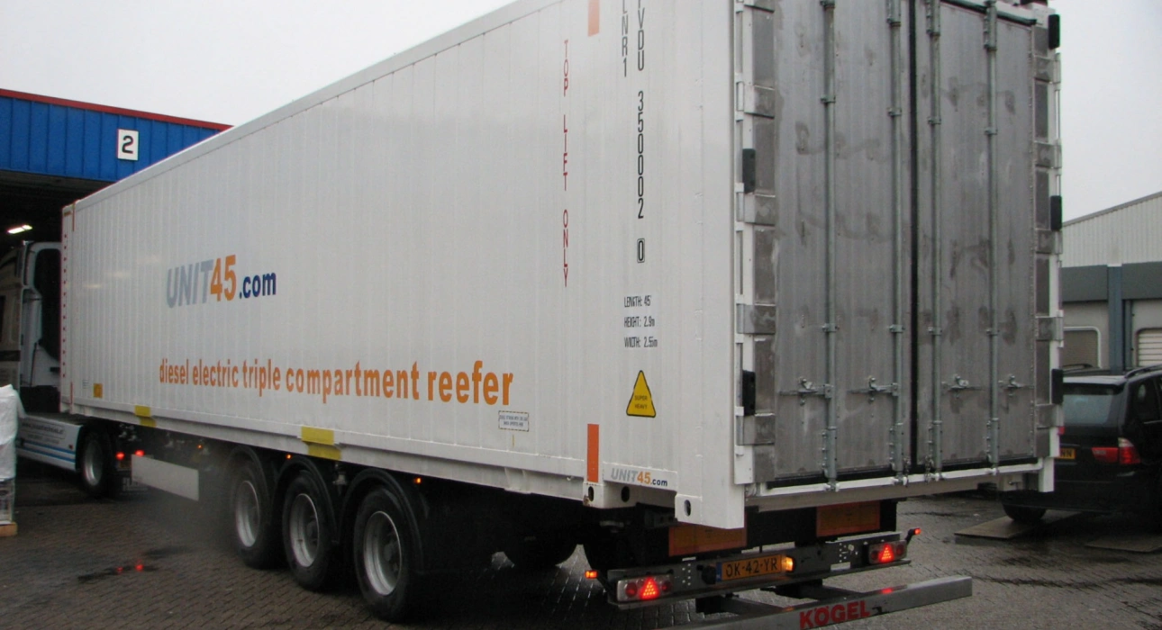 Considering the more strict food and pharma safety regulations, controlling the transport of perishable goods and pharmaceuticals has become more important than ever. UNIT45 therefore offers you, as an option on our diesel-electric and all-electric reefers, the certainty that you can monitor your transport at all times by using GPRS, GPS and satellite technology. This way, at any point, you know the location of your refrigerated cargo.