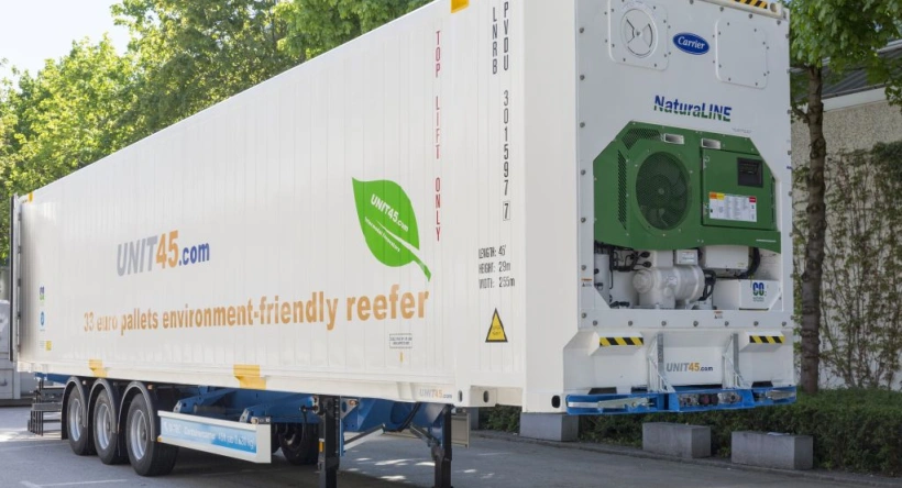 Auf der Transport Logistic, einer alle zwei Jahre stattfindenden Messe im Mai, hatten mehr als 60.000 Besucher aus 123 Ländern die Möglichkeit, sich die jüngste Innovation des Container-Lease-Unternehmens UNIT45 anzusehen: ein 45 Fuß langer „grüner" Kühlcontainer mit der NaturaLINE®-Einheit von Carrier Transicold