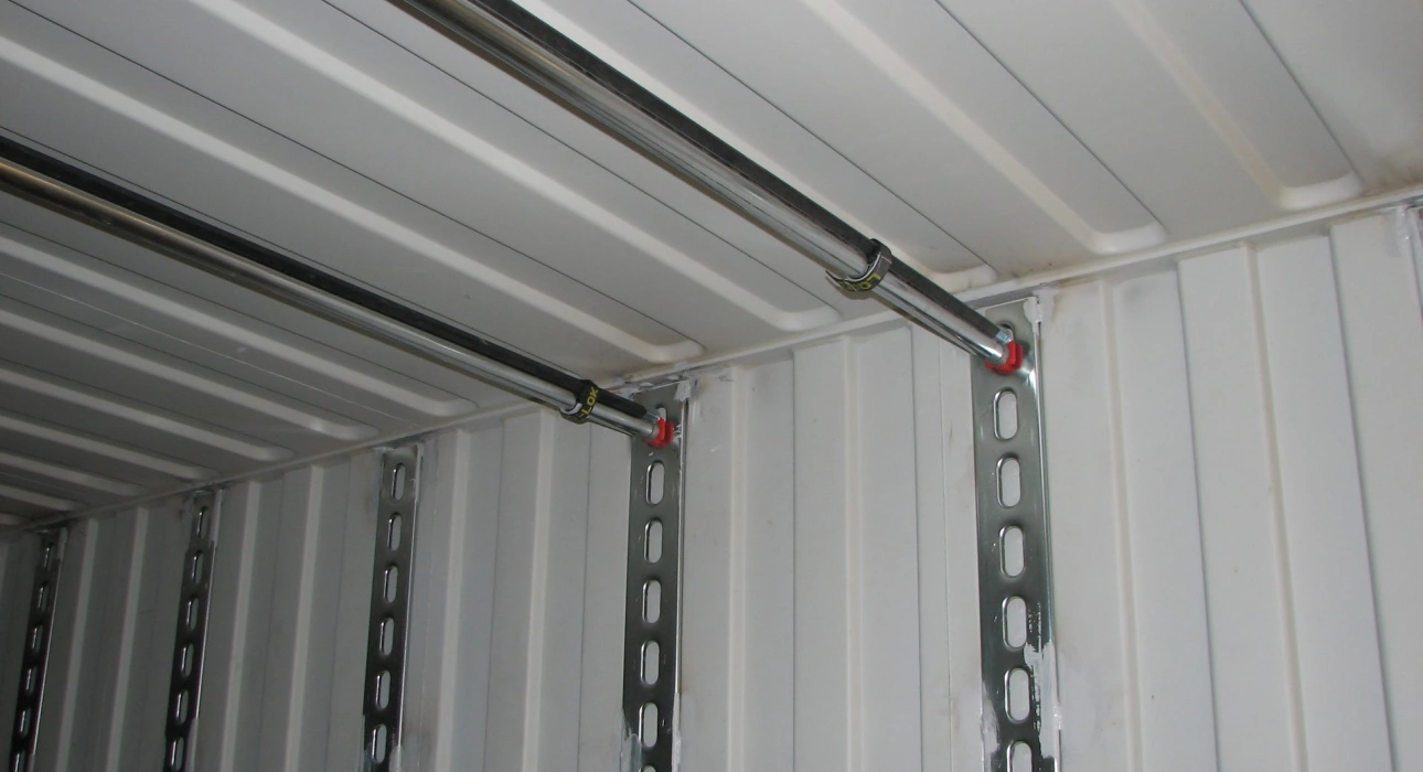 Der Bekleidungscontainer eignet sich hervorragend für den Transport von hängenden Kleidungsstücken. Die Kleiderstangen zum Aufhängen der Kleidungsstücke können leicht entfernt oder an die Decke des Containers gebracht werden. Auf diese Weise kann der Container für den herkömmlichen Transport von 33-Euro-Paletten verwendet werden, ohne dass der Laderaum für Paletten verloren geht, wodurch sich die Notwendigkeit leerer Rücktransporte verringert.