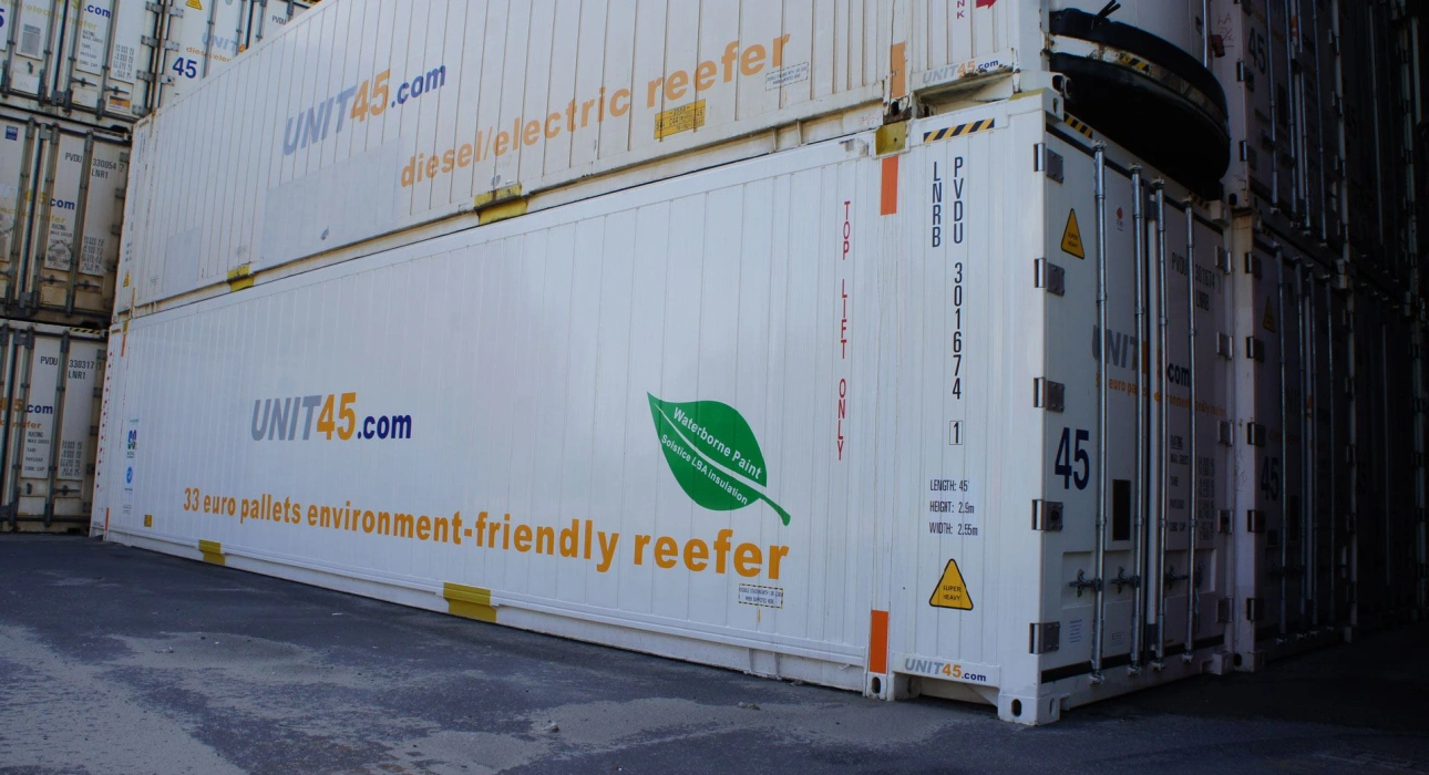 UNIT45 has developed a diesel-electric reefer container primarily intended for use in multimodal operations where rail is featured. The cost of moving temperature-controlled cargoes over long distances by road is ever rising but rail is rarely an alternative since very few train operators can provide a reliable power supply for all-electric reefer containers.