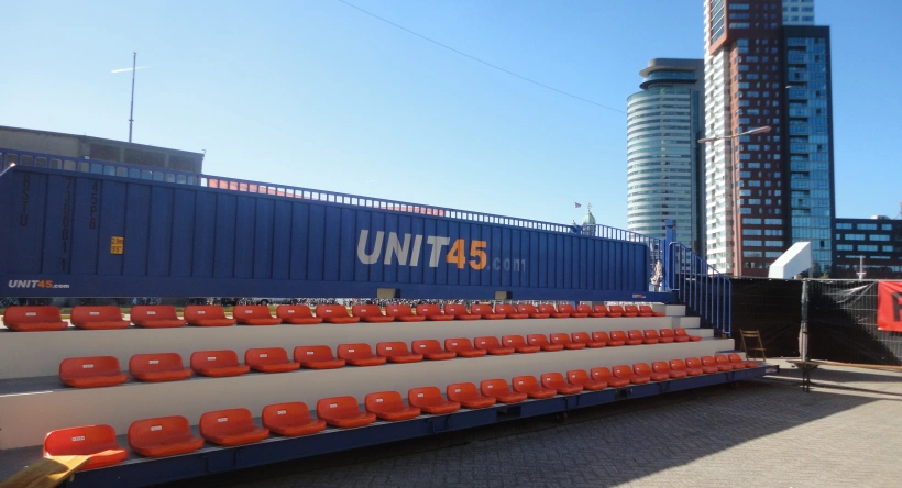 UNIT45 verhuurt de tribune container voor een voorstelling..