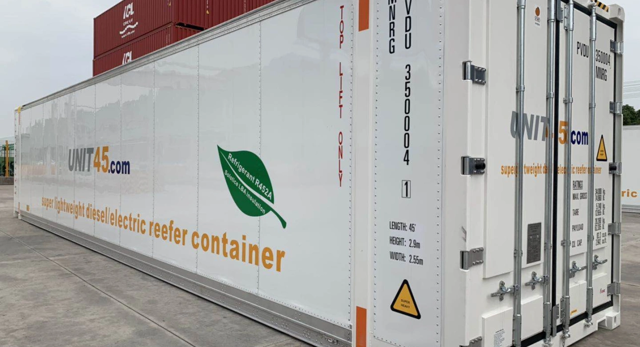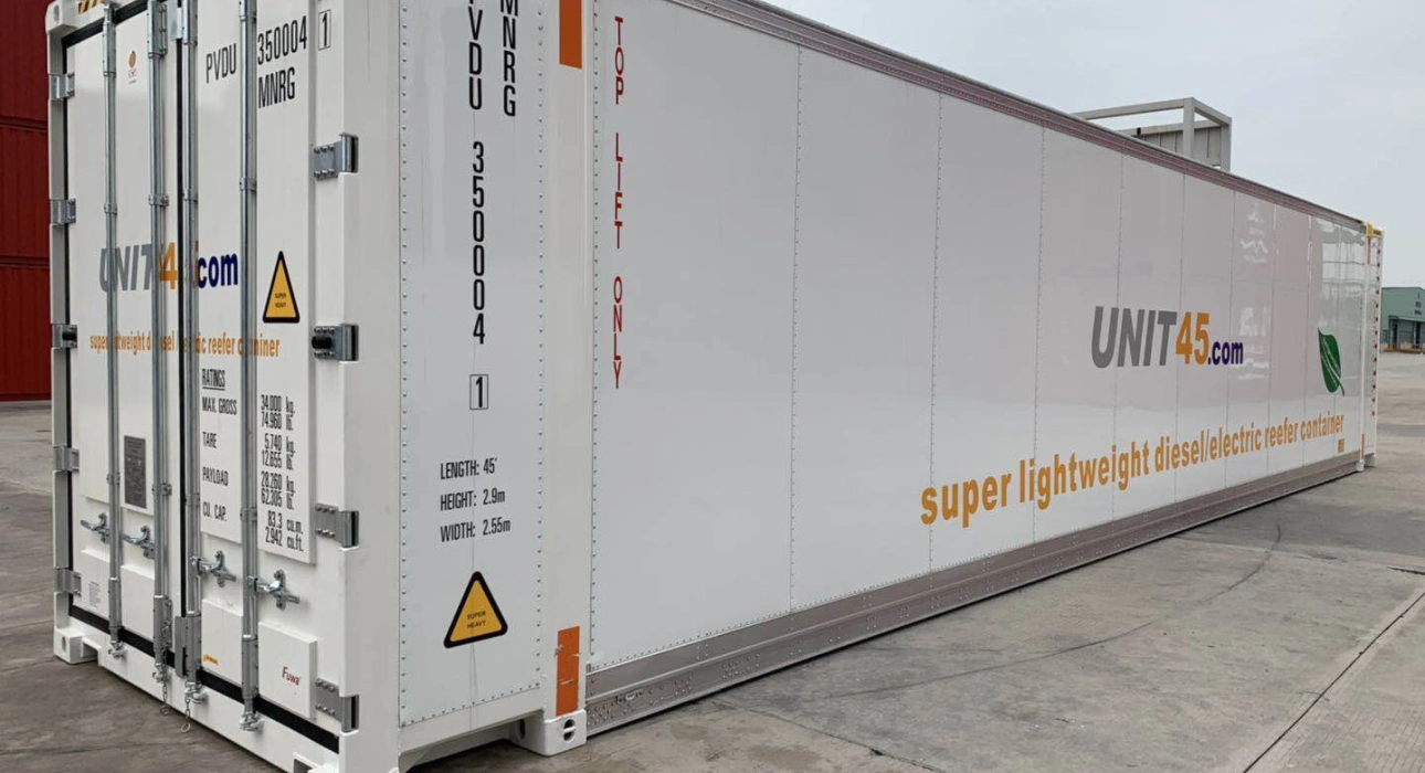 UNIT45 heeft onlangs een nieuwe aluminium lichtgewicht diesel elektrische reefer ontwikkeld. Deze diesel elektrische reefer gebouwd van aluminium, is 1200 kilo lichter in vergelijking met de standaard diesel elektrische reefer. Minder gewicht betekent een groter maximaal laadvermogen waardoor multimodale vervoerders een groot voordeel hebben.