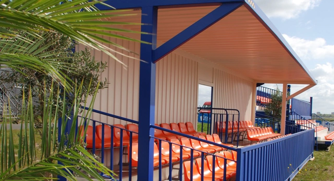 Sportclubs willen hun toeschouwers graag een goede en comfortabele zitplaats bieden met een goed uitzicht op het spelersveld. Om dit te realiseren is vaak een hoge investering vereist. UNIT45 verhuurt de modulaire tribunes aan sportverenigingen en voor evenementen. Dit voor een periode van een weekend tot 6 jaar. Een lange termijn huurcontract verlaagt de initiële investering voor de vereniging en biedt per direct een overdekte tribune oplossing voor bijvoorbeeld het hoofdveld. De tribune containers zijn gebouwd van sterk materiaal en voldoen aan de FIFA-gebruiks- en veiligheidsvoorwaarden. UNIT45 heeft inmiddels de eerste tribune containers geplaatst bij diverse voetbalclubs.